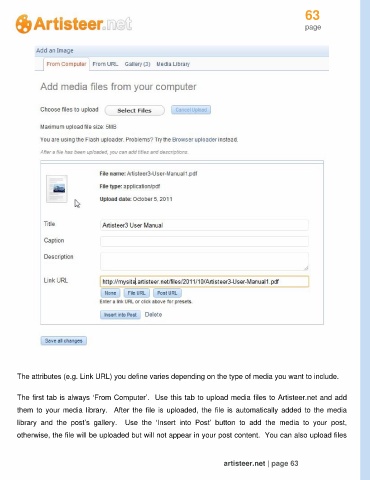 library and the post’s gallery. Use the ‘Insert into Post’ button to add the media to your post,