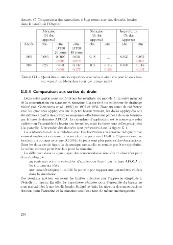 Table G.1 – Quantités annuelles exportées observées et simulées pour le sous bas-